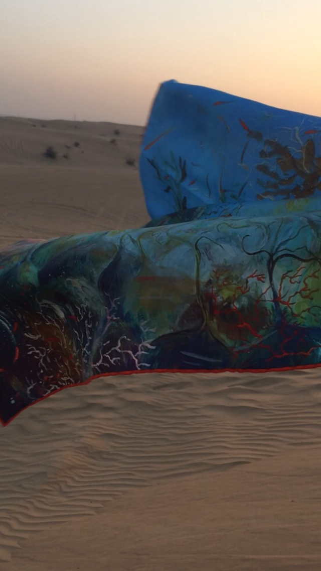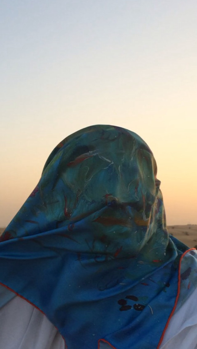 At the sunset…just before a chilly Arabian night befell us…the silk scarf felt like as aesthetic as appropriate a headwear in the windy desert…